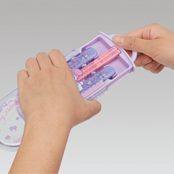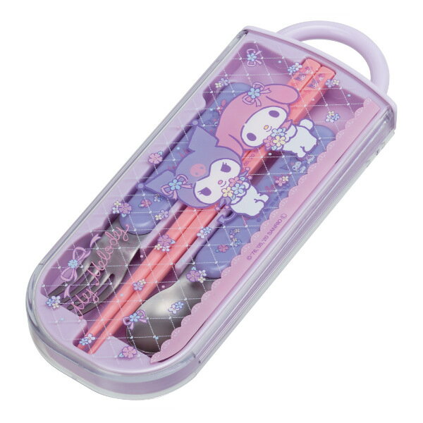 トリオセット 抗菌 箸 スプーン フォーク スライド マイメロディ クロミ パステルフラワー カトラリーセット ( 食洗機対応 カトラリー お箸 子供 AG キッズ 幼稚園 保育園 お弁当 弁当 スライド式 ケース付き キャラクター )